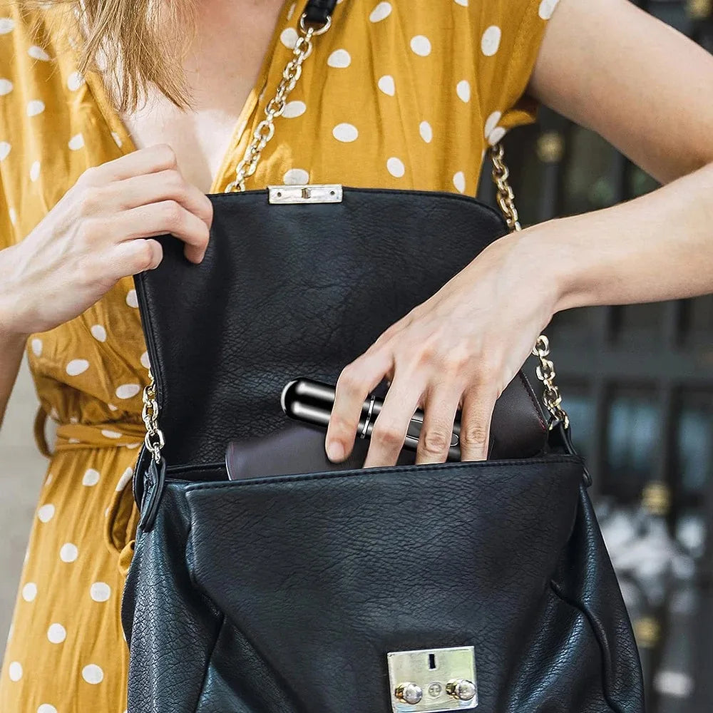 -Lipstick size, small and light enough to be put in pocket or handbag