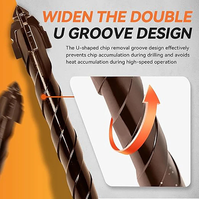 Widely applicable to a variety of materials: suitable for concrete, wood, plastics and a variety of composite materials, the bit is sharp and burr-free, and the polished surface ensures smooth threads, which makes it easy to cope with a variety of application scenarios