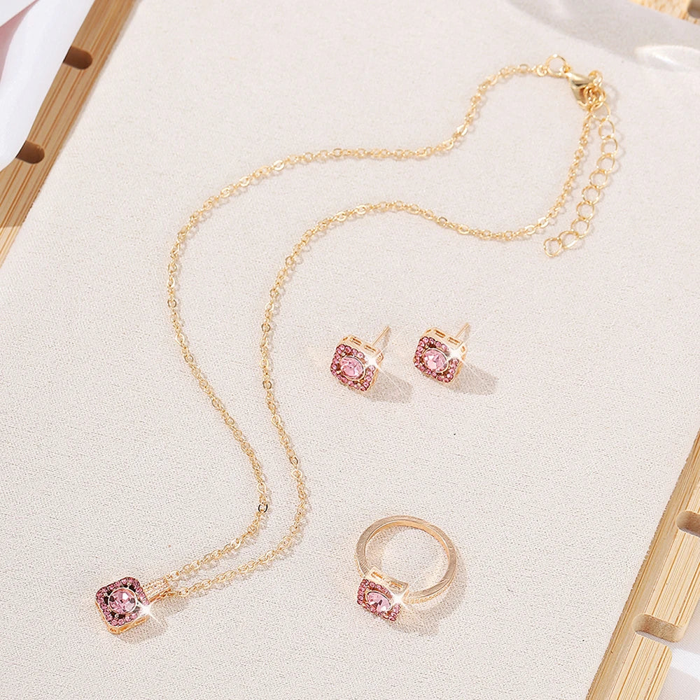 1PC Luxury Cube Jewelry Set, Women's Elegant Necklace, Earrings & Ring