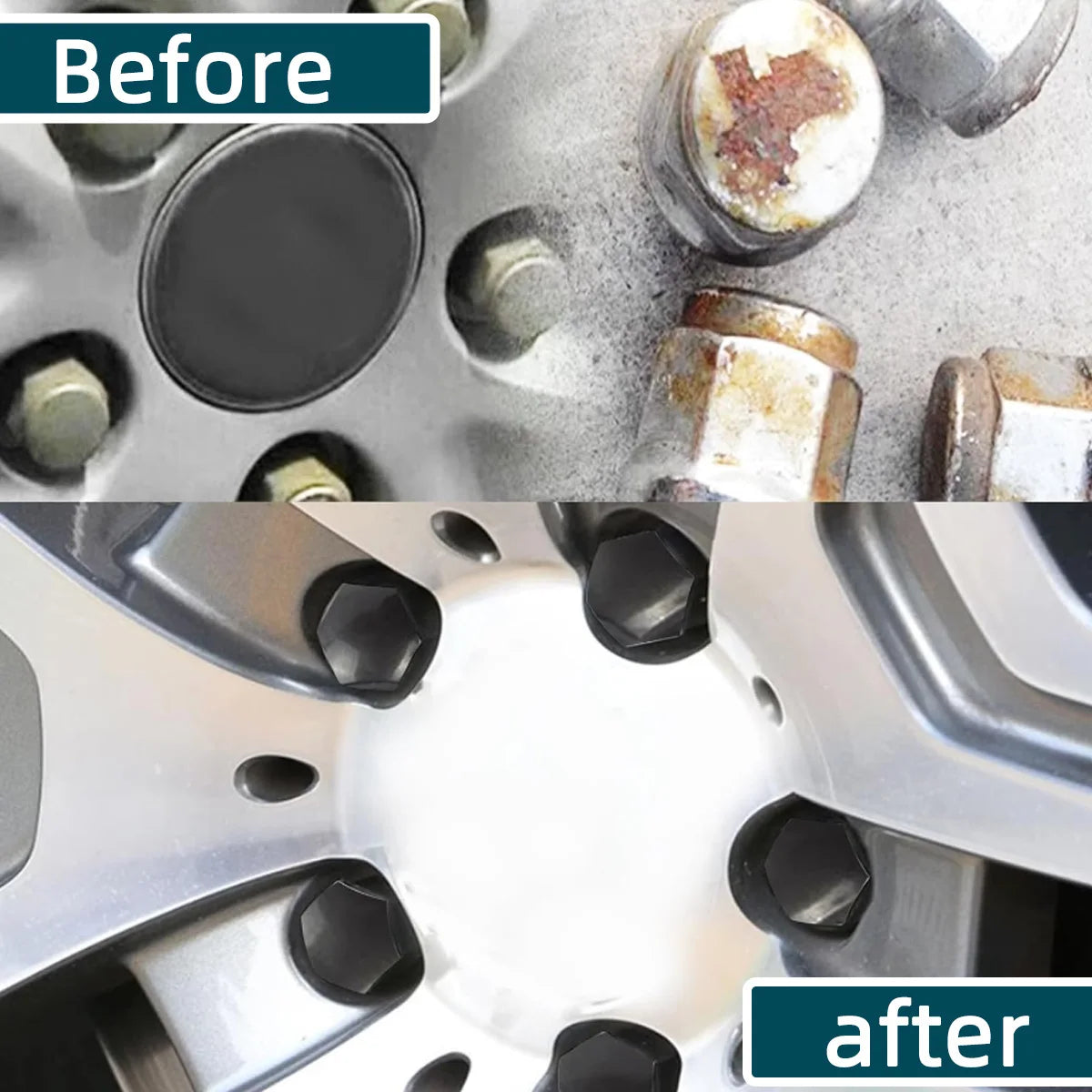 This car's wheel hub nut prevents screws from rusting.