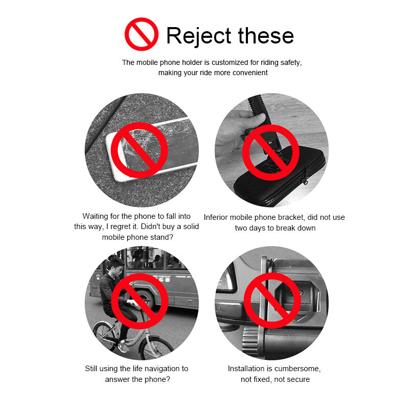 Unique elastic design is compatible with 3.5 inch-7.0 inch screen less than 12mm thick phone. And it is suitable for motorcycle, bicycle use, on the 22mm-35mm (7/8 inch-1.38inch) handlebar