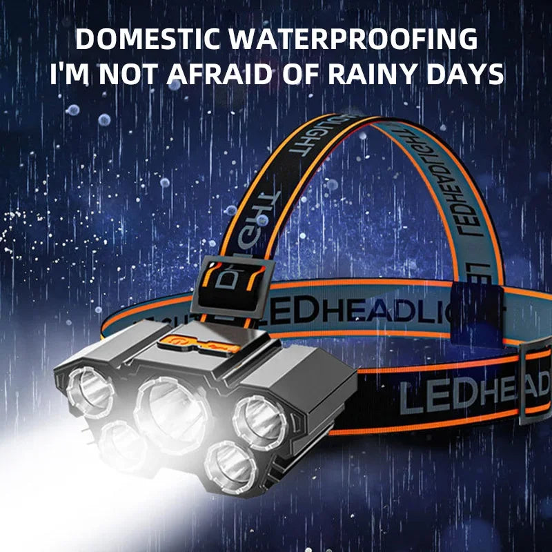 5 LED Headlamp Rechargeable with Built in 18650 Battery Strong Light